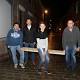 Het Laatste Nieuws Eric Flamand Valentijn Despeghel (links), samen met schepen Dehaene (tweede van links) en vader en zoon Castelein in de Tegelstraat, een straat waar geen auto's mogen parkeren en waar het mogelijk is om banken aan de gevel te monteren. |